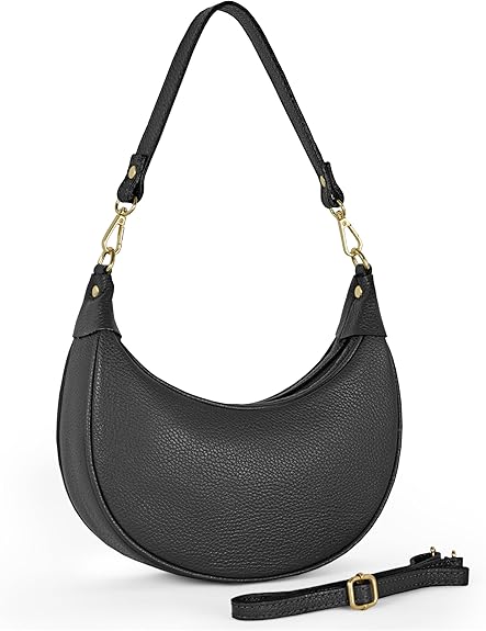 7. Italian Genuine Leather Shoulder Bag for Women, Crescent Saddle Style