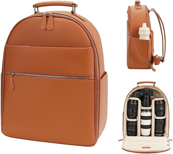 10. Small Camera Backpack Classic PU Leather for DSLR, Professional Camera