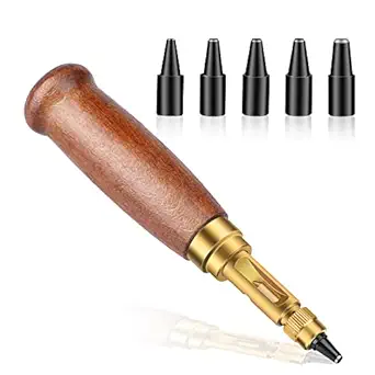 Product Name Adjustable Leather Hole Punching Tool Automatic Puncher with Wooden Handle Brand TLKKUE Material Brass and Wood Punch Sizes 1.5 mm, 2 mm, 2.5 mm, 3 mm, 3.5 mm, 4 mm Dimensions 130 mm x 25 mm Use Case Leather, Paper, Rubber, Plastic Customer Reviews 4.4 out of 5 stars (440 reviews)