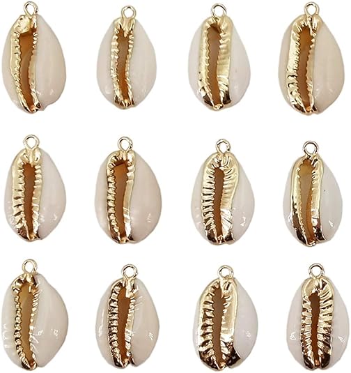 6. INSPIRELLE 12PCS Golden Natural Sea Shell Pendants Beach Seashells Cowrie