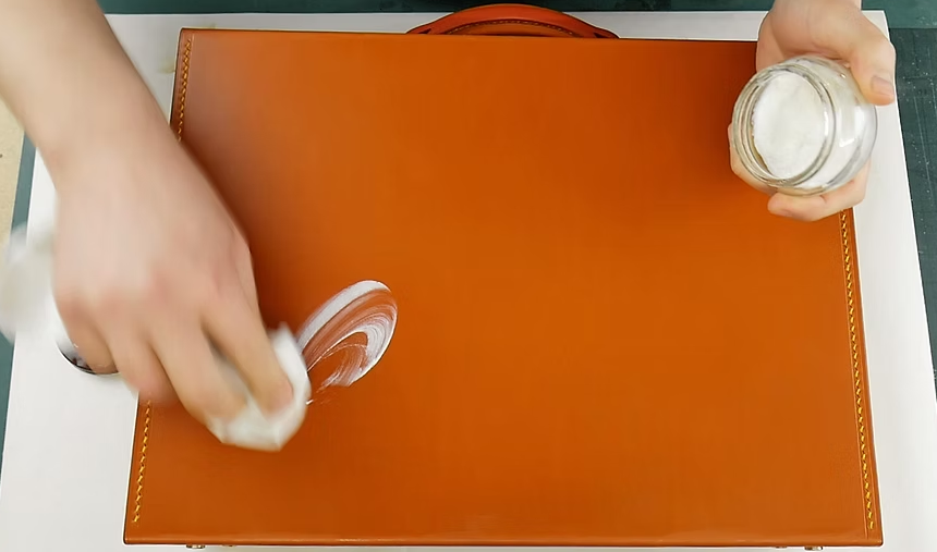 - Applying excess moisture or soaking solutions, as leather is porous and can swell or develop mold.